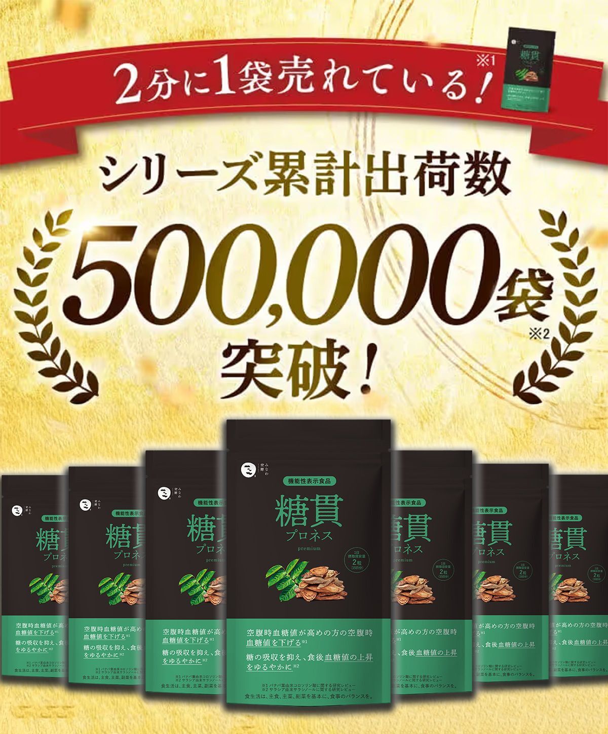 ※ 機能性関与成分のバナバ葉由来コロソリンさんとサラシア由来サラシノールの組み合わせ (2023年2月時点消費者庁データベースより)